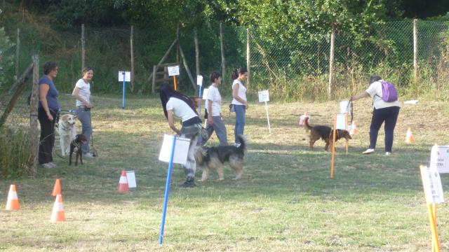 Alcuni cani all'inizio hanno faticato a concentrarsi ma poi tutti sono riusciti a lavorare bene nonostante i tanti cani presenti e le persone in movimento accanto a loro.