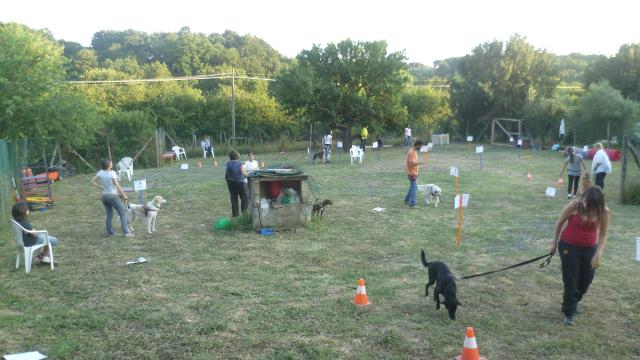 Sicuramente molti di voi avranno insegnato al cane il “resta”, ma quanti di voi riescono ad ottenerlo mentre vi passa a meno di due metri qualcun altro con il cane all'interno di uno spazio con 12 cani e 15 persone? Anche questo vuol dire aumentare le competenze del binomio.