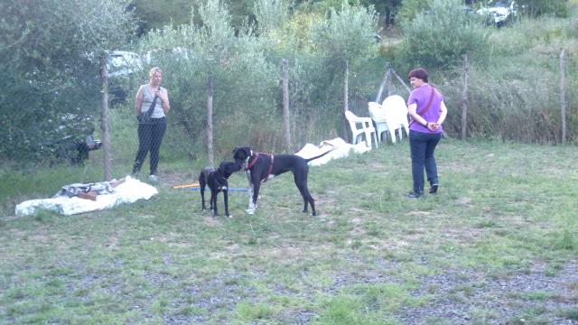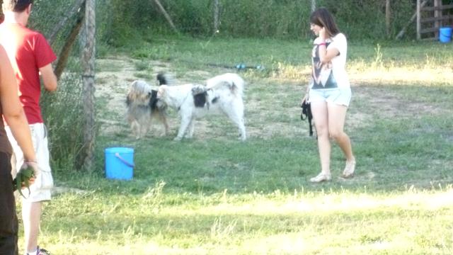 Siamo ormai al termine della serata e Antonella e Marco si fermano vicini per favorire un'ulteriore interazione tra i loro cani prima di mandare Margot a riposarsi, stanca ma sicuramente con un piccolo bagaglio di esperienza in più.
