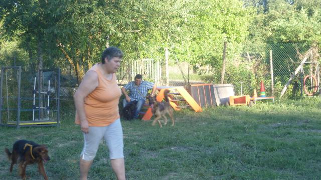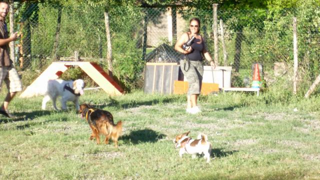 Come previsto all'inizio Mila e Dea si sono messe a correre felici alla ricerca di qualcuno con cui giocare, appena si sono calmate un po' abbiamo fatto entrare Zara che è andata immediatamente vicino alla recinzione per inseguire le macchine che passavano lungo la strada. Ho chiesto subito a Valentina e Marco di avvicinarsi in modo che i nostri cani “agevolatori in erba” potessero valutare la situazione ed effettivamente il loro intervento ha avuto successo aiutando Zara ad uscire elegantemente dalla situazione e tornare al richiamo di Daniela.
